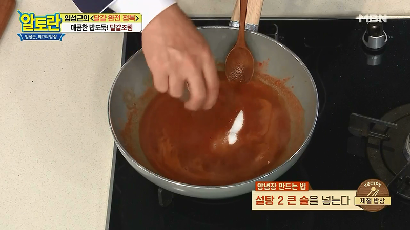 1. 팬에 양념 재료를 넣고 강한 불에서 끓여 주세요.