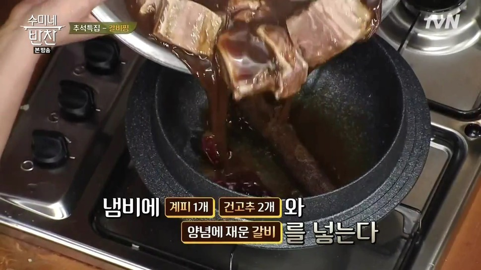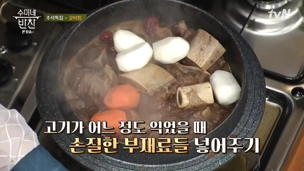 21. 불을 끄고 마지막으로 참기름을 아주 조금만 뿌리면, 김수미 소갈비찜 황금레시피가 완성됩니다.