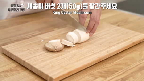 10. 표고버섯의 자루(꼭지)를 제거한 후, 반으로 자르거나 꽃모양처럼 예쁘게 썰어 사용하셔도 좋습니다.