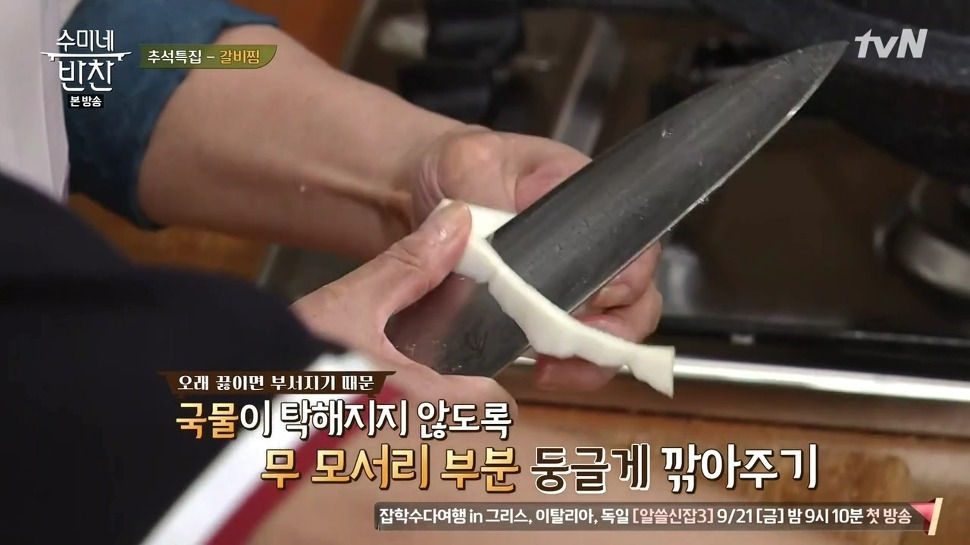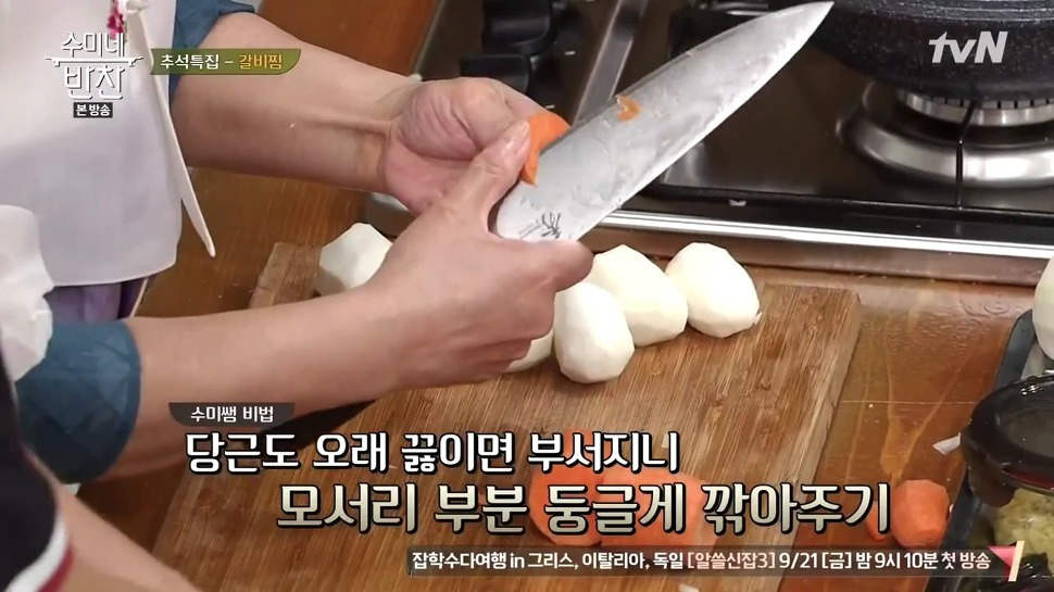 12. 이제 갈비찜에 채소를 넣을 단계입니다. 무 1/3개(360g)를 넣고 충분히 익혀 주세요.