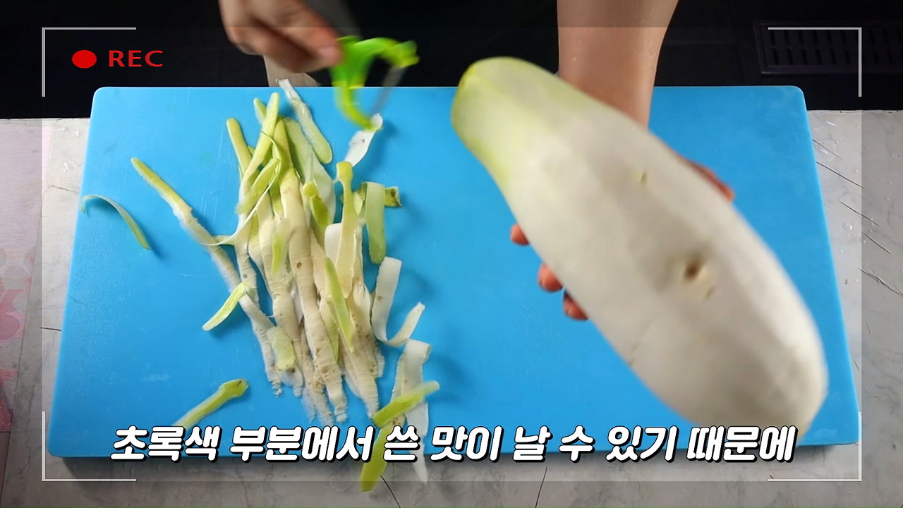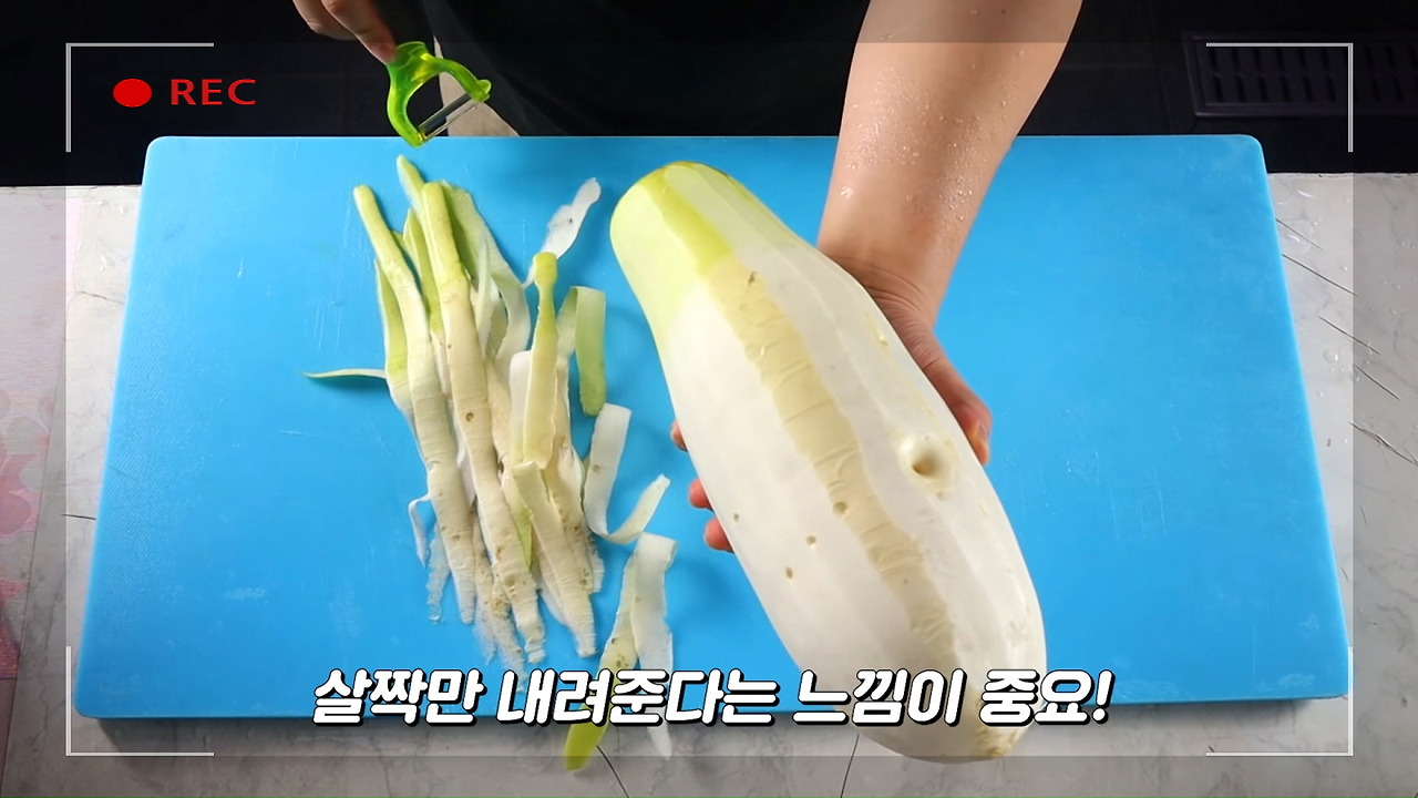 무 껍질을 깎을 때 너무 큰 힘을 주면 무가 점점 작아지니, 최대한 가볍게 깎아주는 것이 좋습니다.