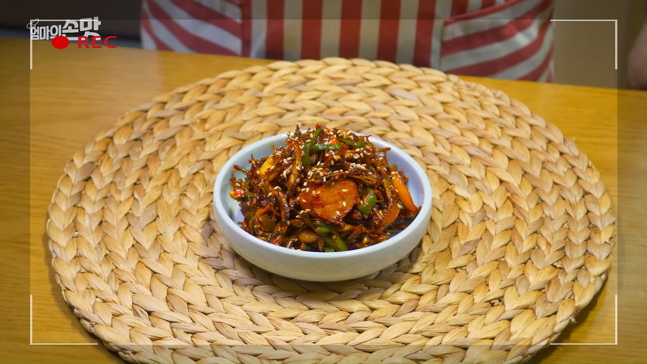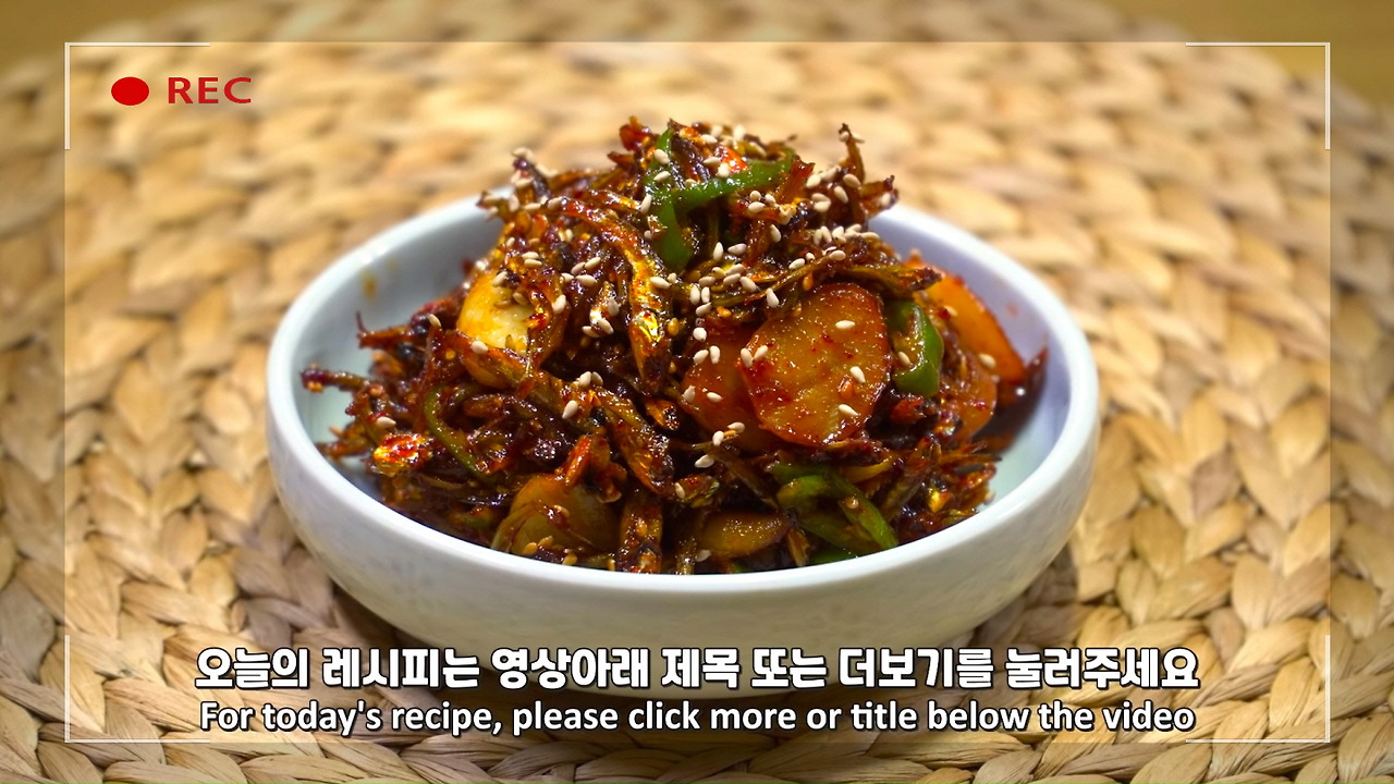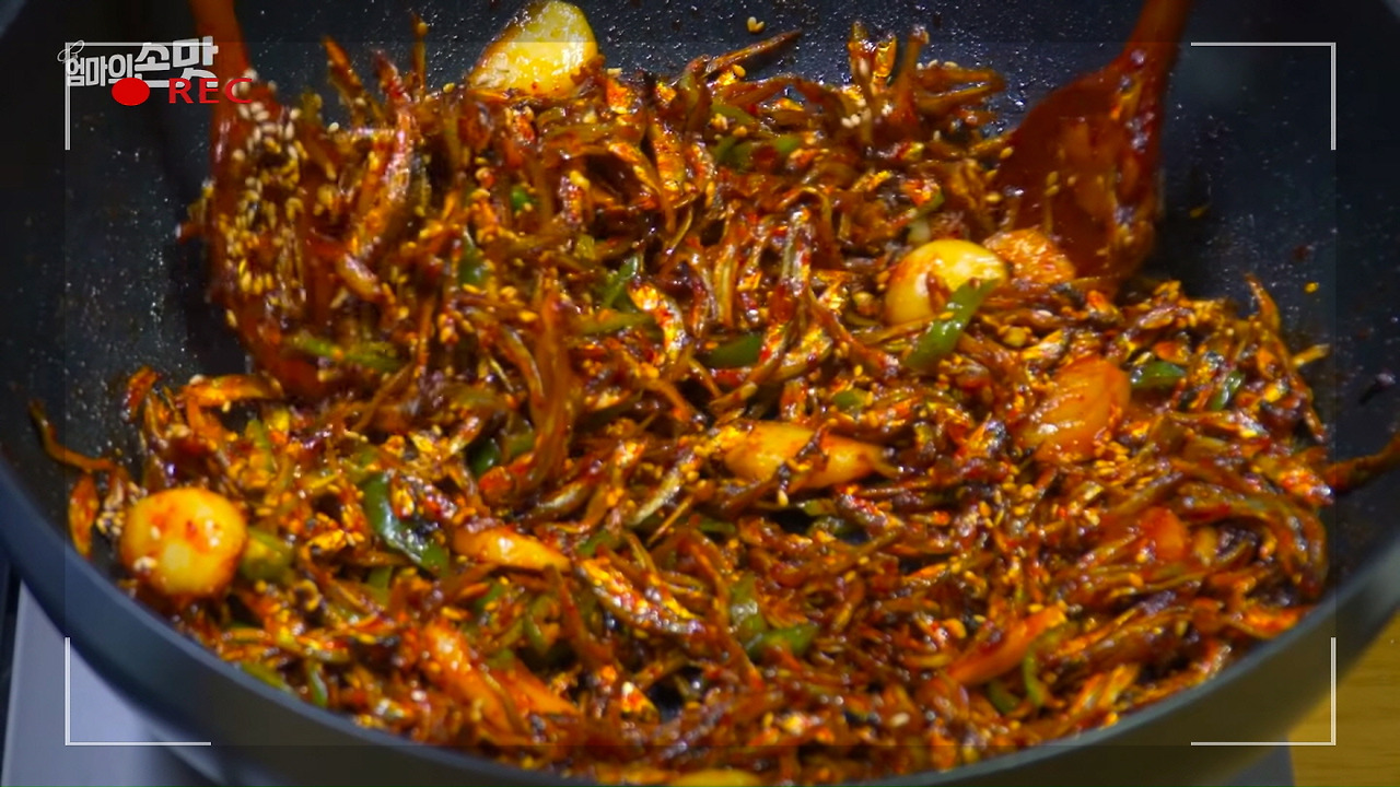 평소 레시피를 공부할 때 즐겨보는 유튜브 채널 <엄마의손맛> 채널의 '밥상 위에 단골손님 고추장으로 볶아 더 맛있는 멸치볶음' 영상을 소개했습니다.