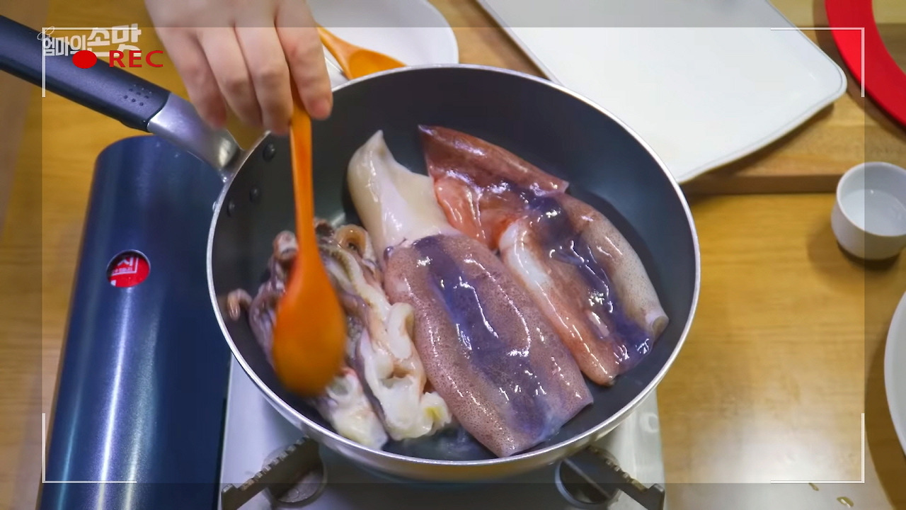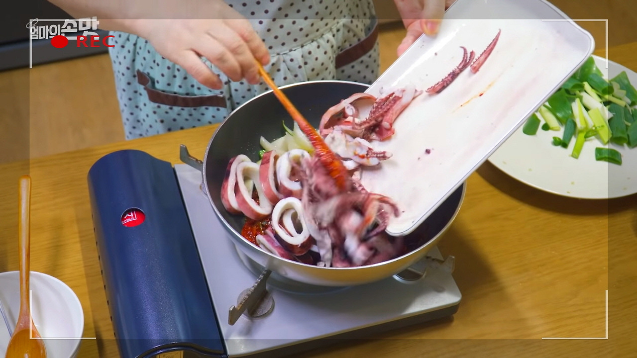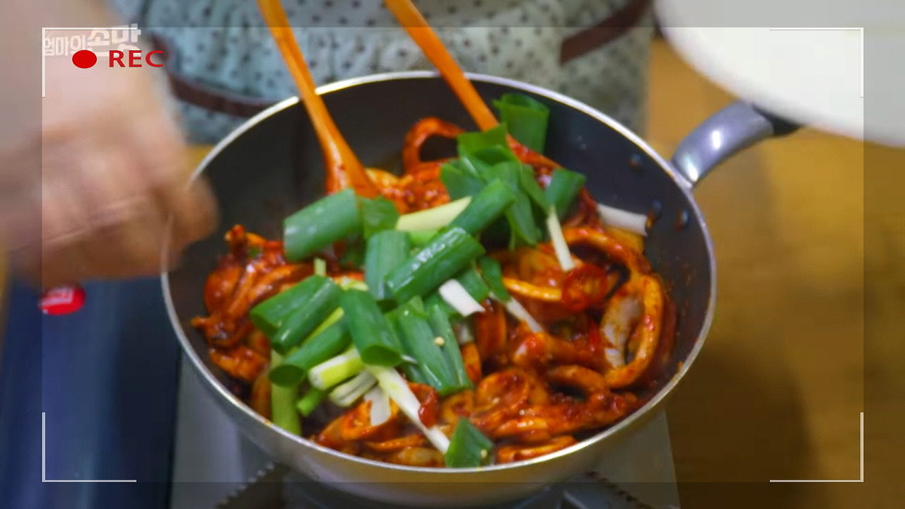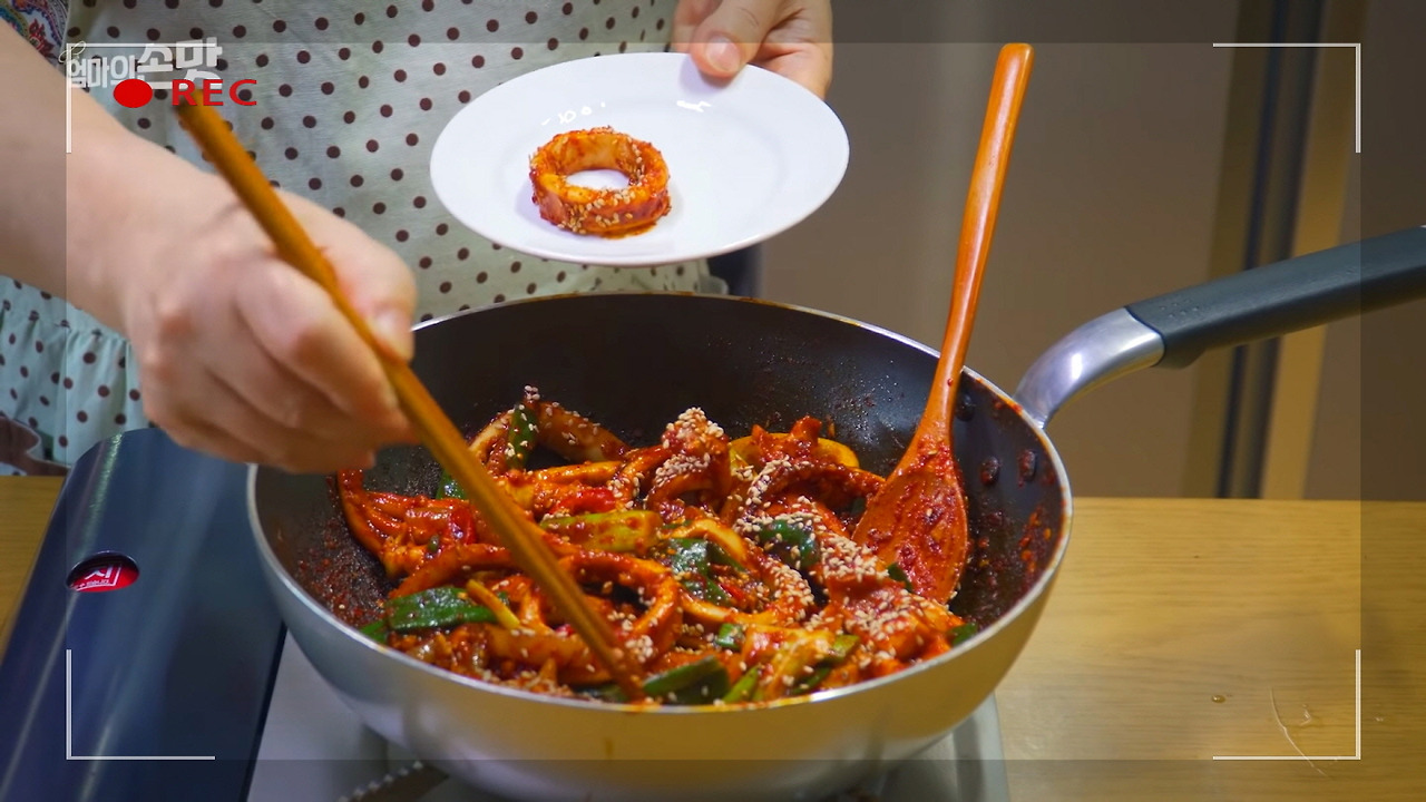 평소 레시피를 공부할 때 즐겨보는 유튜브 채널 <엄마의손맛>의 ‘누구나 쉽게 물 안 생기고 맛있게 매운맛 오징어볶음’ 영상을 소개해드렸습니다.