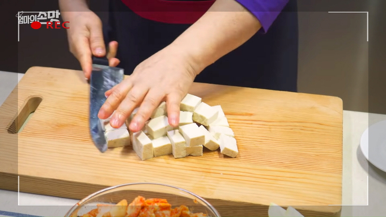 두부도 먹기 좋은 크기로 잘 썰어 김치찌개에 담백한 풍미와 맛있는 건더기를 더해줍니다.