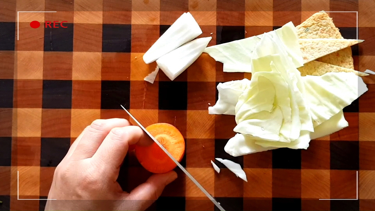 양파와 당근은 많이 넣지 않아도 괜찮습니다. 다른 재료들만으로도 충분히 맛있는 떡볶이를 즐기실 수 있습니다. 대파는 돌돌 말아 파채로 곱게 썰어 준비해 주세요. 은은한 파향이 떡볶이 소스와 차돌박이와 어우러져 더욱 풍부한 맛을 느낄 수 있습니다.