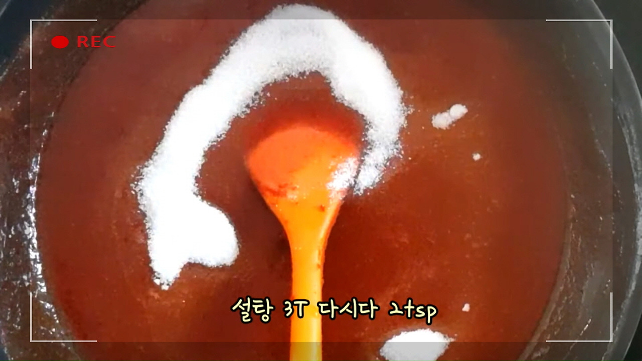 설탕 3큰술과 다시다 2티스푼을 넣어 떡볶이 양념장에 감칠맛과 달달한 맛을 한층 더 끌어올려주세요.