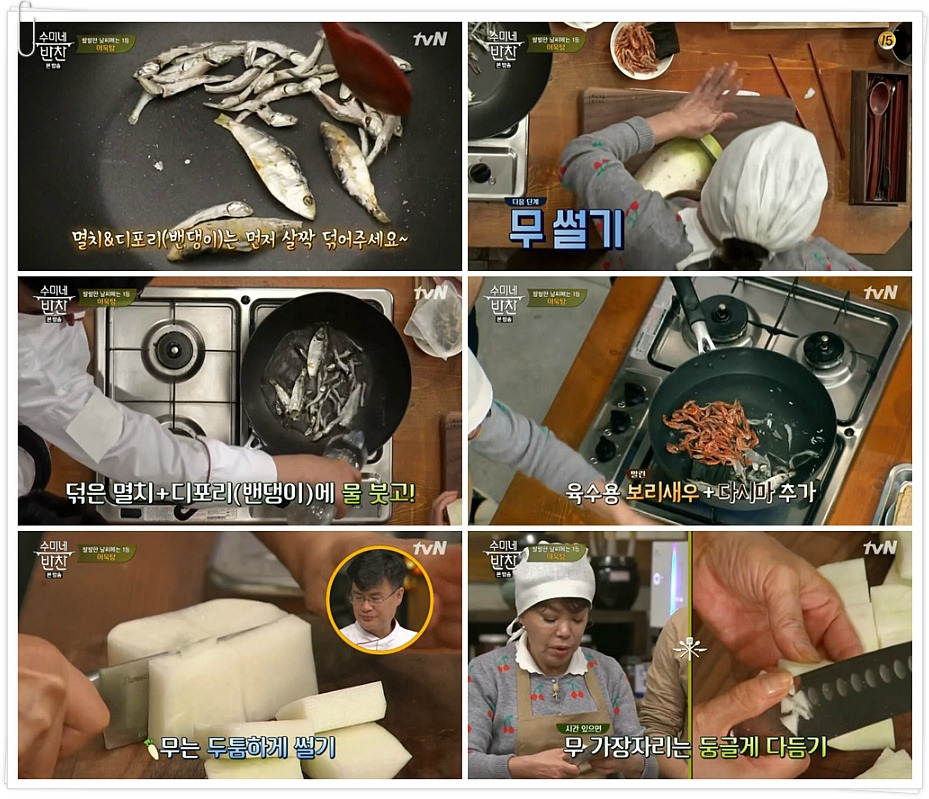 9. 어묵탕 육수에는 꼭 무와 육수용 재료를 넣어야 국물이 시원하고 맛있다고 합니다. (김수미 선생님께서는 육수용 재료를 건져낸 후, 물을 조금 더 추가하셨습니다.)