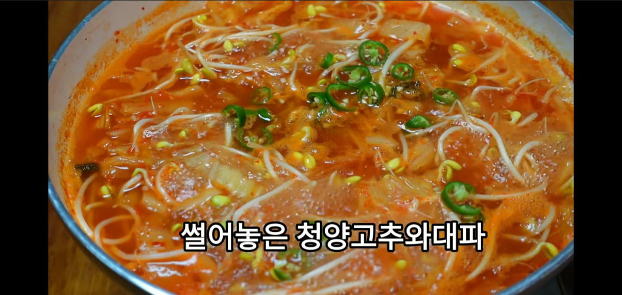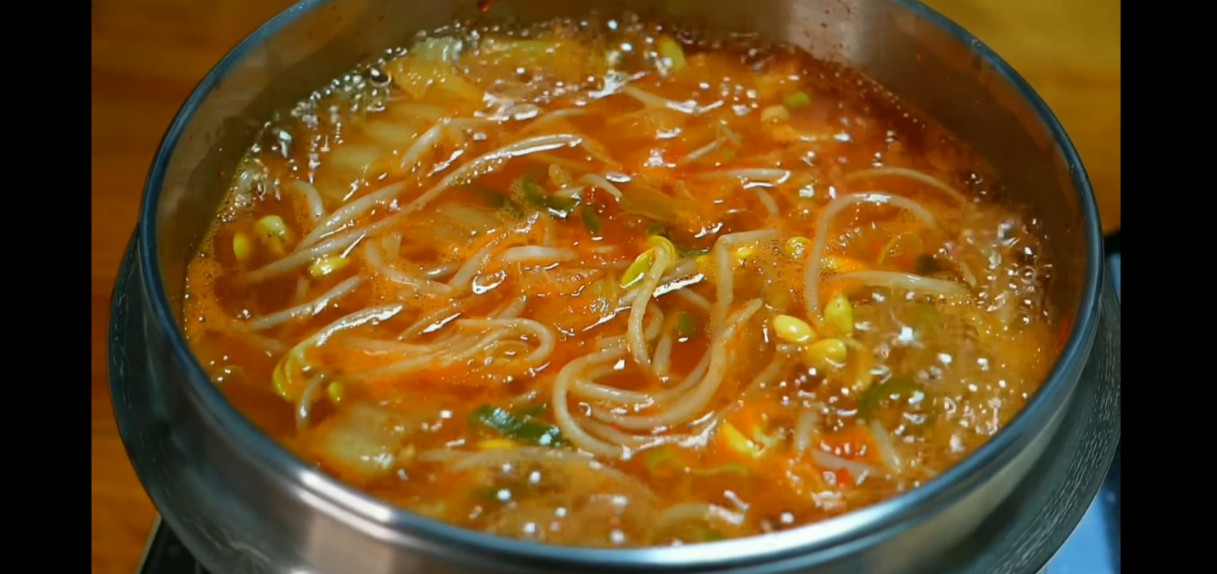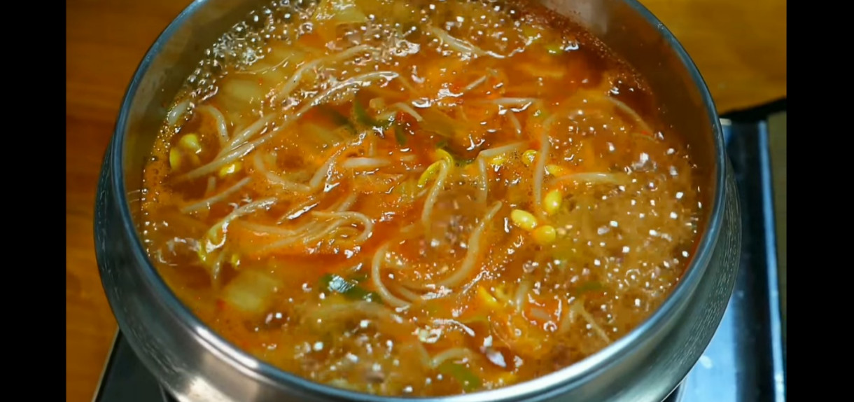 이렇게 콩나물을 넣기 전에 김치가 푹 익도록 끓여주어야 김치의 시원한 맛이 골고루 퍼져 더욱 맛있는 콩나물국을 즐길 수 있습니다.