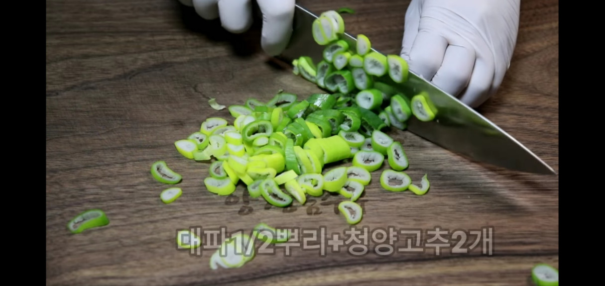 대파 반 대와 청양고추 두 개도 작게 썰어주면 더욱 시원하고 얼큰한 콩나물국을 맛볼 수 있습니다.