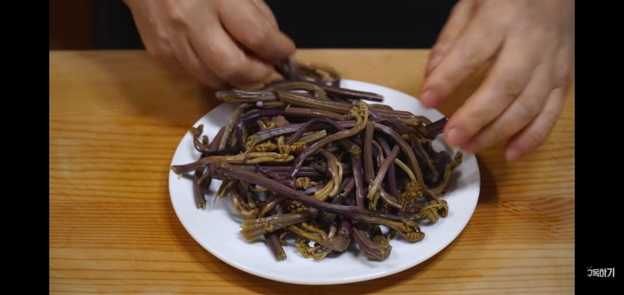 대파 2대는 반으로 갈라 큼지막한 크기로 썰어주시고, 고사리 한 줌은 깨끗이 씻어 먹기 좋게 잘라 준비해 주시면 육개장 맛있게 끓이는 법에 들어갈 재료 손질이 모두 완료됩니다!