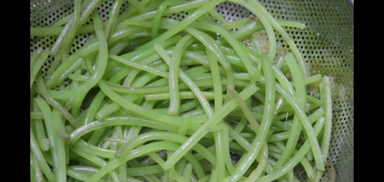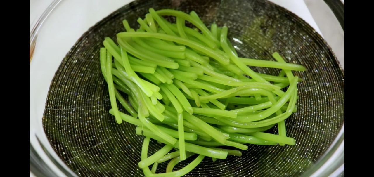 잘 삶아진 고구마줄기는 체에 받쳐 물기를 빼주시면 고구마줄기볶음 황금레시피에 들어갈 고구마줄기 손질이 완료됩니다!