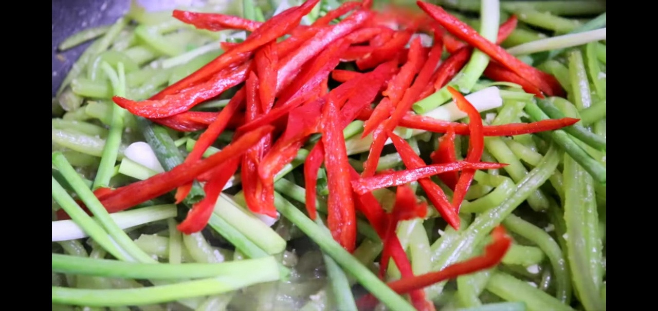 고구마줄기볶음에 알싸한 향을 더해 줄 홍고추는 씨를 빼고 세로로 길게 썰어 주시면 됩니다.