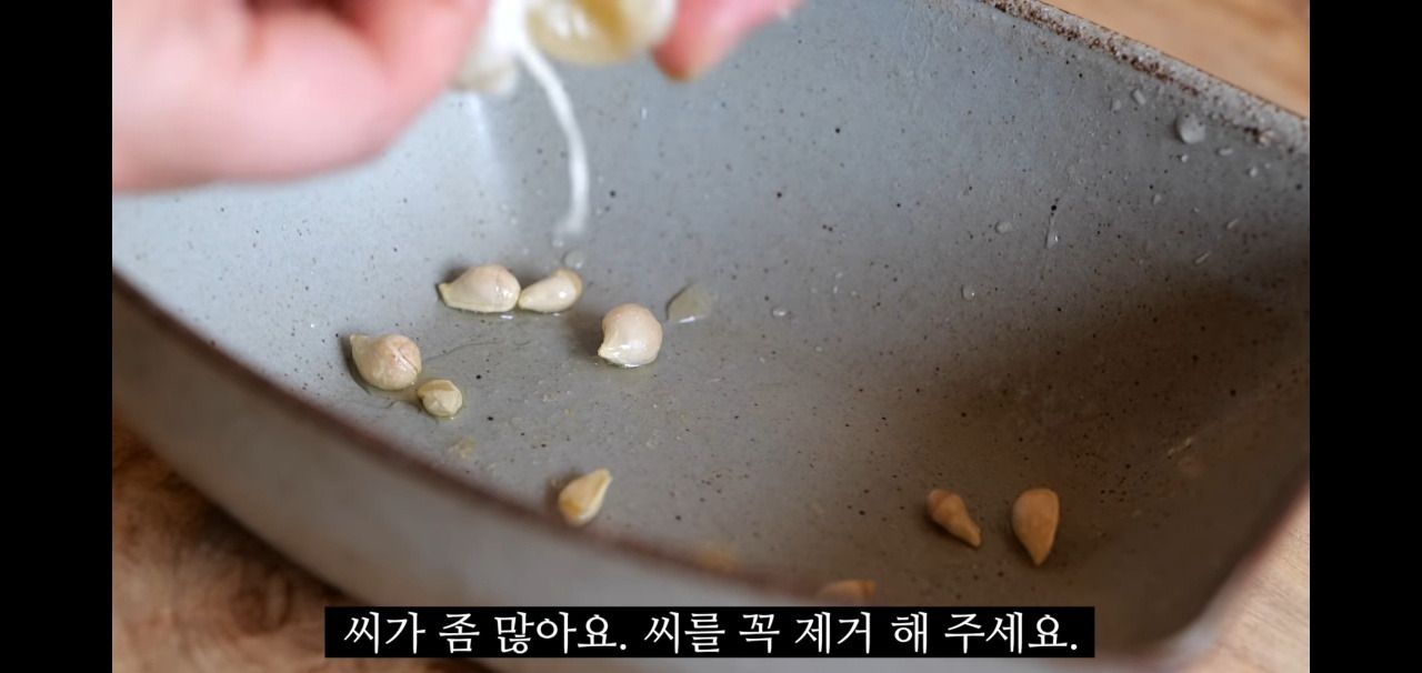 이렇게 과육을 모두 분리한 후에는 유자 씨를 꼼꼼히 제거해주세요.