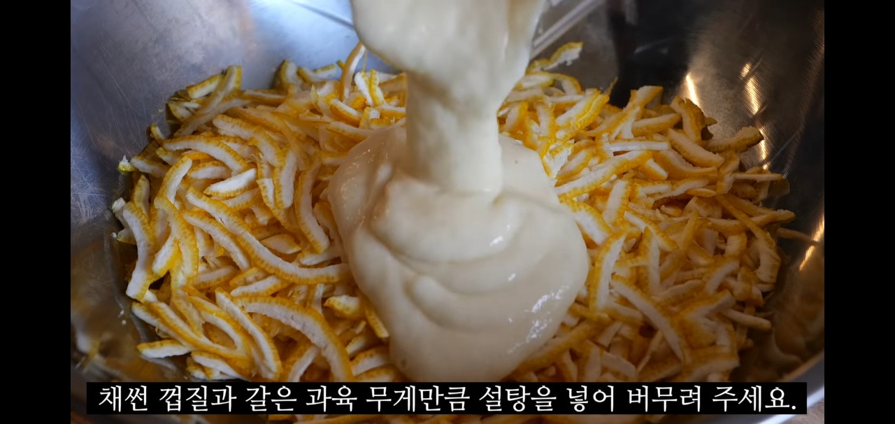 그다음 설탕이 잘 녹도록 골고루 버무려주면 오늘의 유자청 만들기가 완성됩니다!
