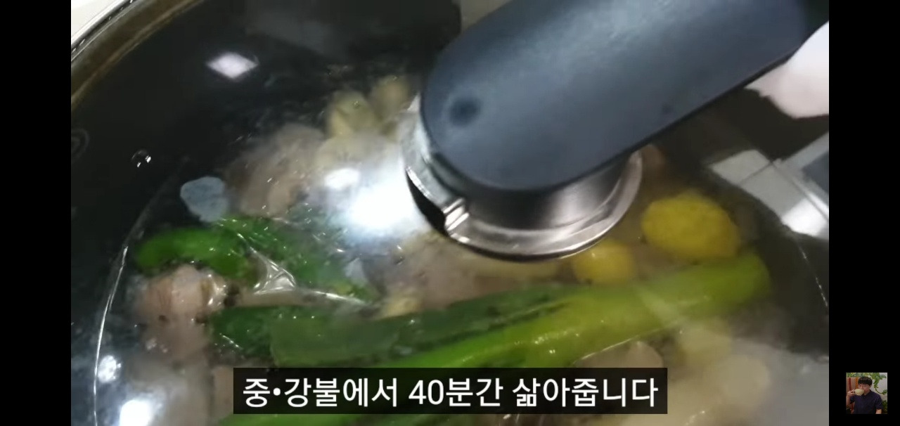 뚜껑을 덮고 중강불에서 40분간 끓여 진한 육수를 우려내 주세요.