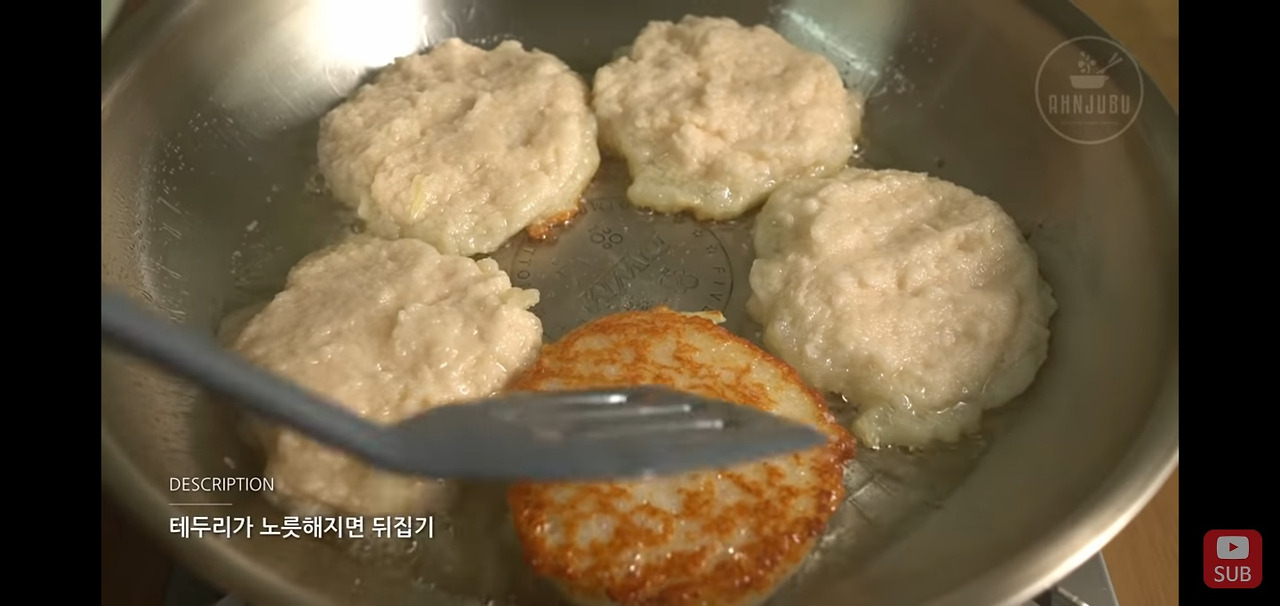 팬에 감자전을 구우면서 가장자리 부분이 노릇해지면 뒤집어서 구워주시죠.