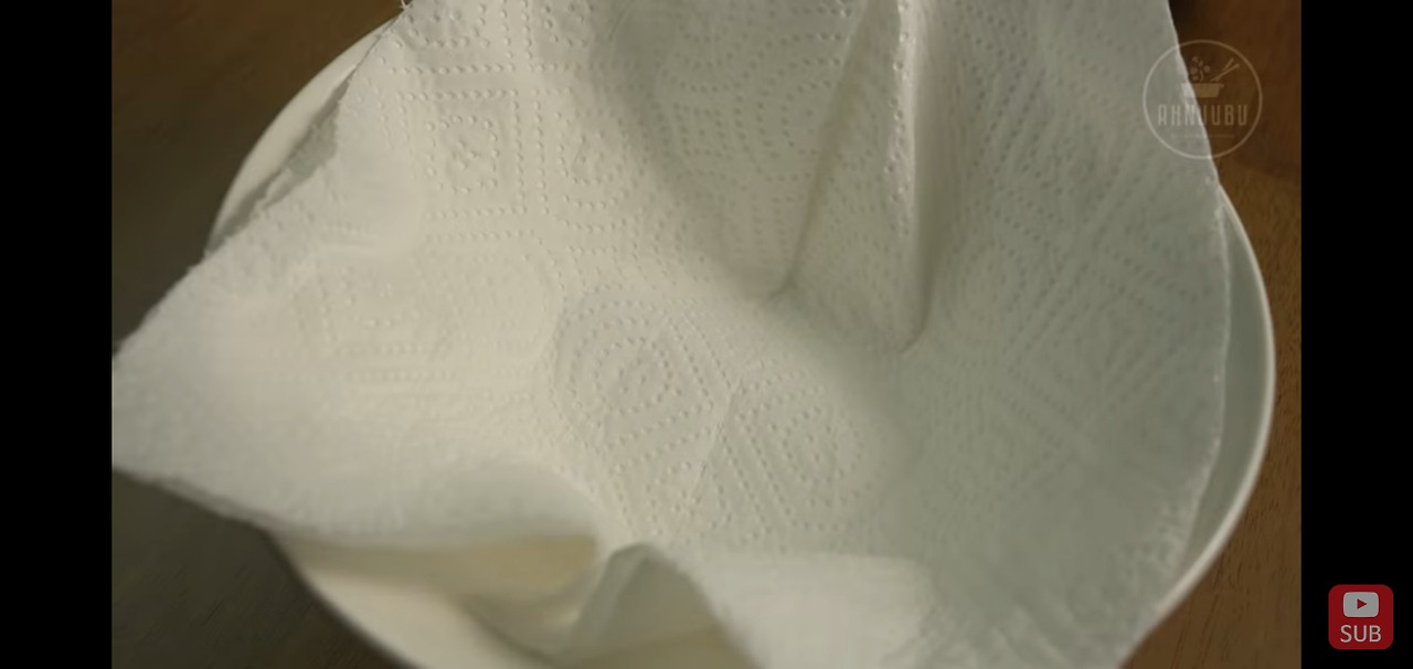 기름이 빠지도록 키친타올을 깐 그릇 위에 세워서 놓아주세요.