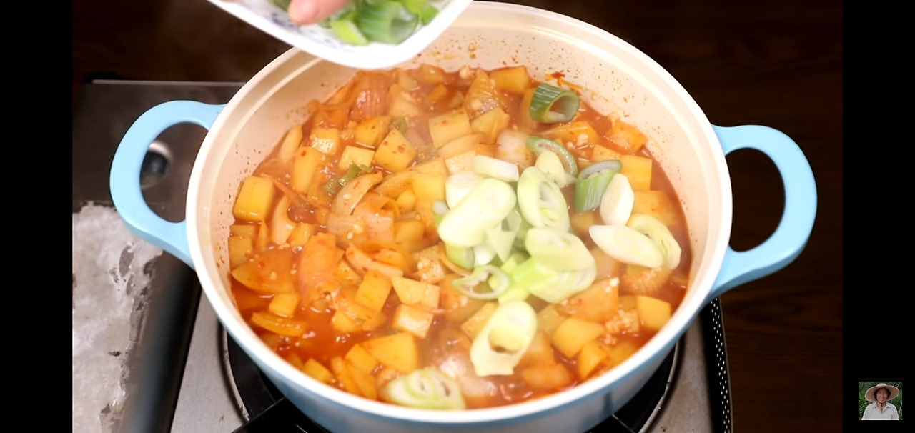 대파도 넣고 한 번 섞은 뒤 뚜껑을 덮고 30초만 더 끓여 주시면 오늘 감자 짜글이 레시피가 완성됩니다! 정말 간단합니다!!