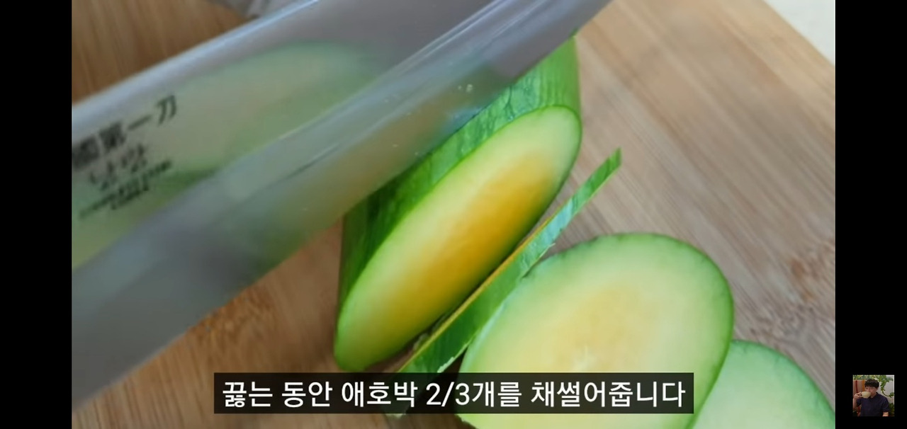 애호박 2/3개를 얇게 채썰어서 준비해주자.