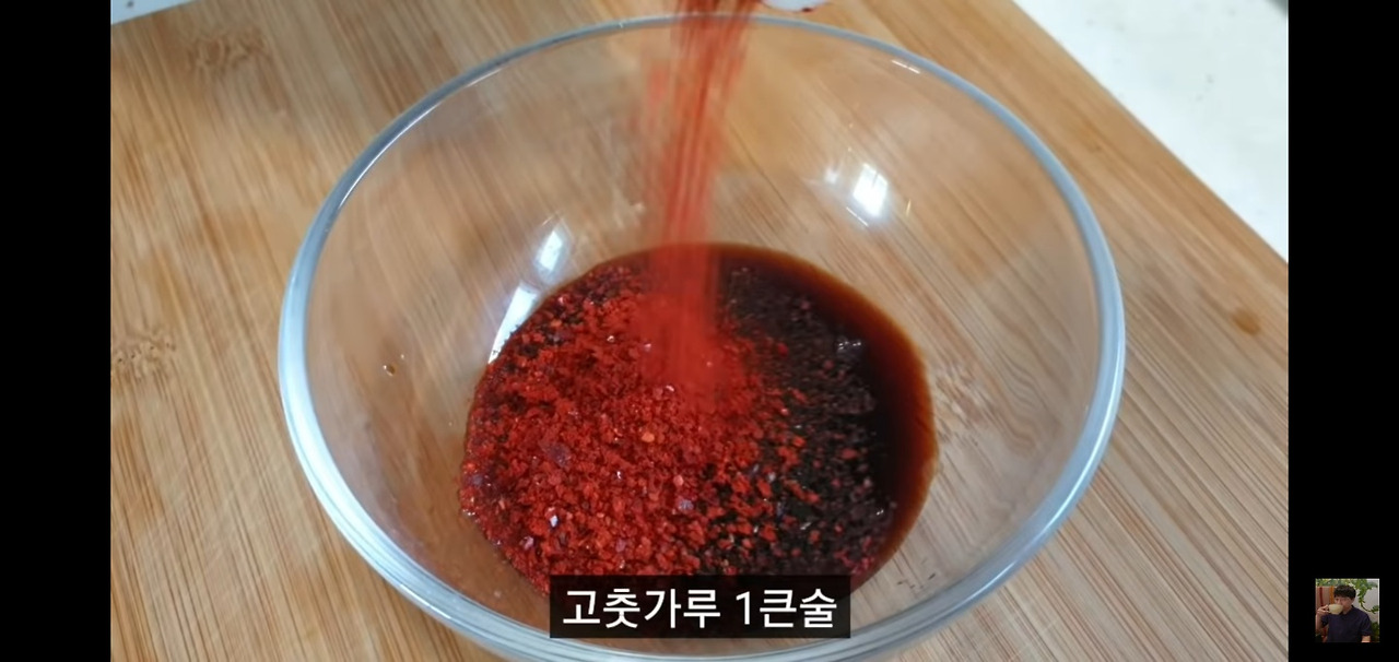 그리고 고추가루 1스푼과 다진 마늘 반 스푼을 넣어 주세요.