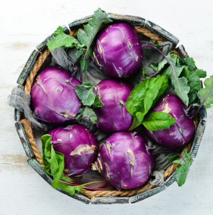 독일 순무라고도 불리는 콜라비는 양배추과에 속하는 구근 채소로, 양배추와 브로콜리를 섞은 듯한 맛이 납니다. 콜라비는 둥근 구근과 밝은 녹색 잎 두 부분을 식용으로 사용하며, 구근은 품종에 따라 연한 녹색이나 짙은 자주색을 띠기도 합니다. 콜라비는 생으로 먹거나 찌거나, 볶거나 삶아 먹을 수 있으며, 비타민 C가 풍부해 샐러드나 다양한 채소 요리에 활용하기 좋은 식품입니다.