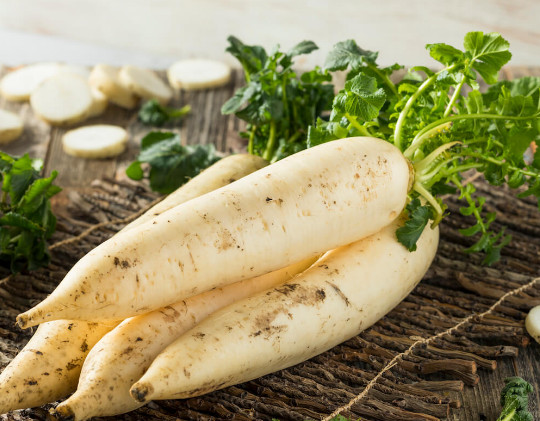 무는 주변에서 흔히 볼 수 있는 식재료로, 국이나 조림 등 다양한 요리에 사용되고 있습니다. 무에는 시니그린 성분이 포함되어 있어 기관지 점막을 보호하는 역할을 합니다. 또한 가래를 제거하여 인후부 염증을 완화하는 데도 도움이 됩니다.