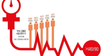 고혈압은 수축기 혈압이 140mmHg 이상이거나 이완기 혈압이 90mmHg 이상인 경우를 말합니다. 관상동맥질환, 뇌졸중, 신부전 등 다양한 합병증을 일으킬 수 있습니다. 2019년 질병관리청 자료에 따르면 30세 이상 남성의 31.1%, 여성의 23.1%가 고혈압을 가진 만성질환자로, 2015년부터 환자가 1,100만 명을 넘었습니다. 고혈압 자체도 위험하지만, 합병증이 발생하면 더 심각한 문제가 됩니다.