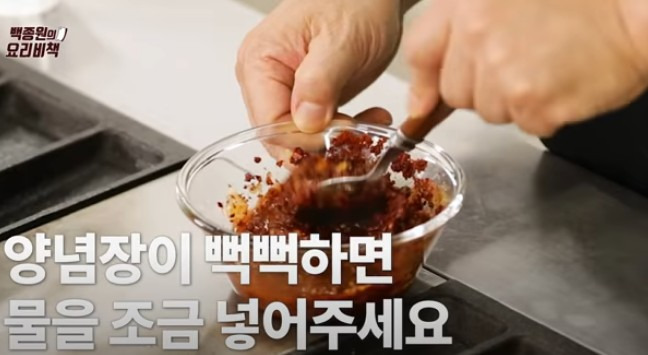 ▶ 만약 양념장이 너무 걸쭉하다면, 준비해둔 물 1/2컵을 넣고 잘 섞어주세요.