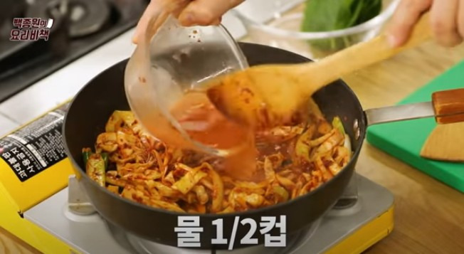 ▶ 고추기름이 나올 때까지 볶아주시면 되고, 볶는 동안 채소에서 수분이 나와 국물이 생길 거예요.