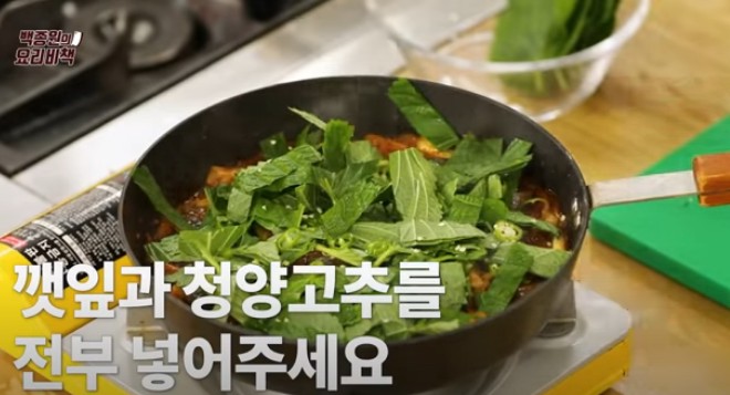 ▶ 깻잎은 나물용 깻잎이나 깻잎순이 더 적합합니다. 만약 쌈용 깻잎을 사용하신다면, 깻잎을 반으로 갈라 양배추보다 약간 두껍게 썰어주세요.
