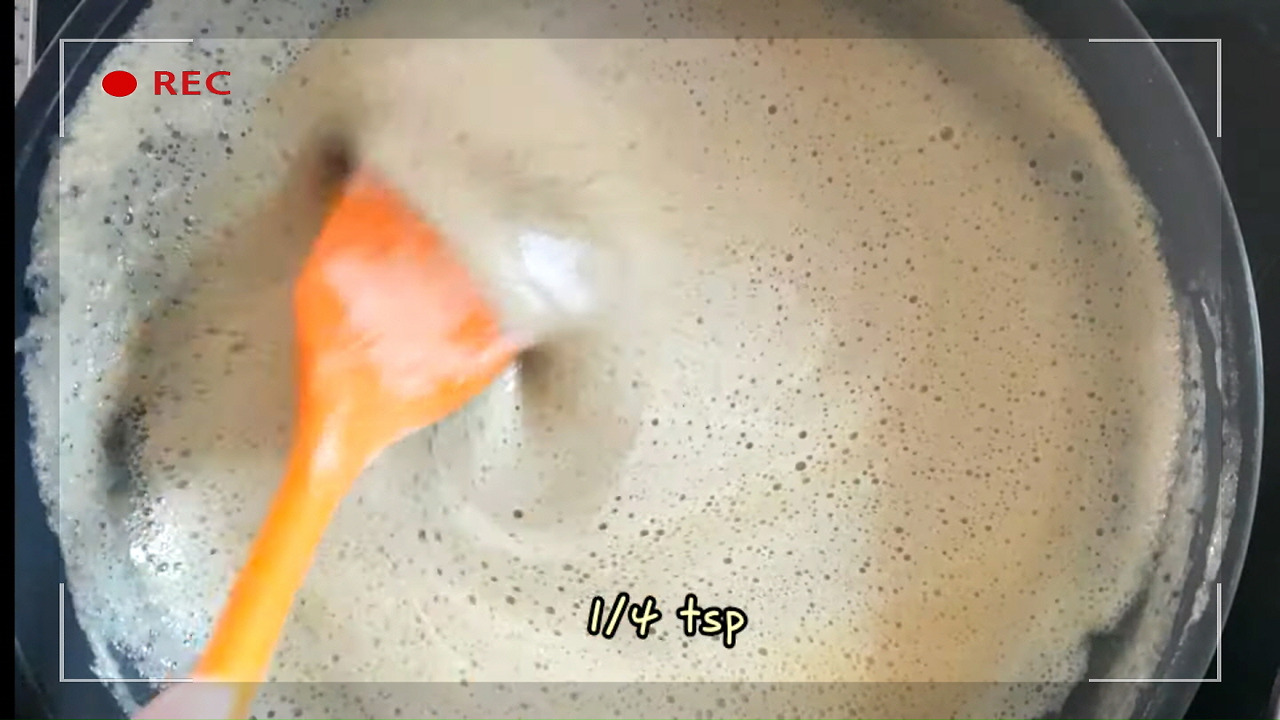 그다음으로 맛소금 5와 1/2티스푼, 미원 1/4티스푼을 넣어 떡볶이의 간을 맞추고 감칠맛을 더해 주세요.