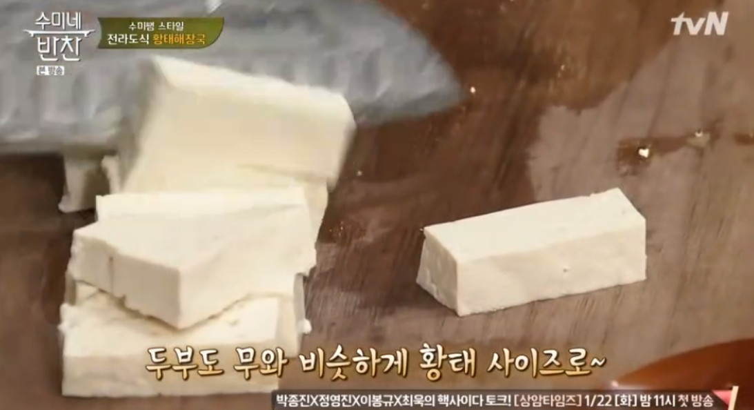 두부도 무와 비슷하게, 황태 크기에 맞춰 잘라주세요.