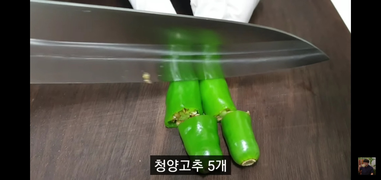 청양고추 5개와 양파 반 개는 큼직하게 썰어주세요.