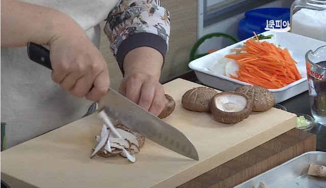 또 표고버섯의 갓이 두꺼울 경우에는 옆으로 저며 채 썰면 먹기 좋은 크기로 즐길 수 있어요. 표고 대신 느타리버섯이나 팽이버섯을 넣어도 잘 어울린답니다.