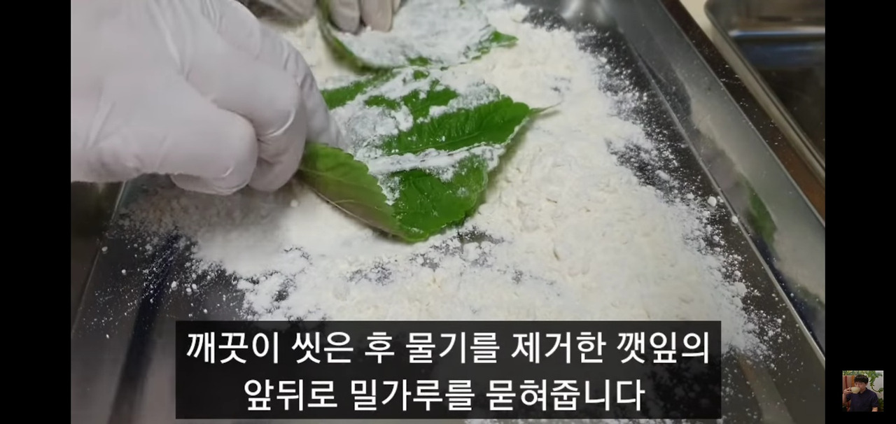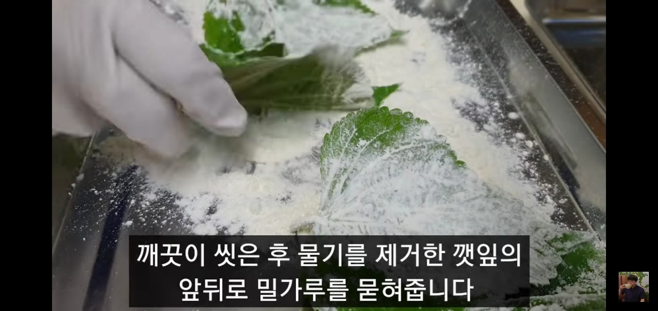 이제 깻잎에 튀김옷을 입혀 볼까요?