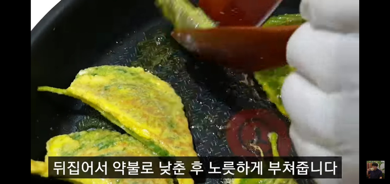 자, 이제 깻잎전 만들기의 마지막 단계입니다.