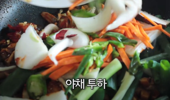 오징어 볶음 맛있게 만드는법 ⑥ 야채와 함께 볶아주기
