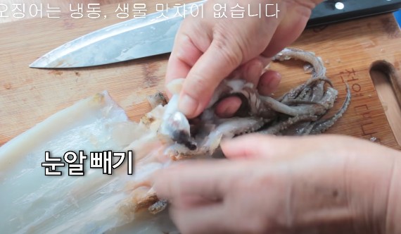 냉동 오징어는 살짝 해동한 후 손질해 주세요.