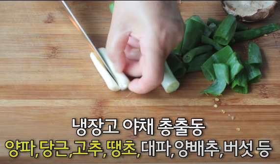 야채는 냉장고에 있는 다양한 채소를 골고루 넣어주시면 되는데, 양파, 당근, 청고추, 청양고추, 대파, 양배추, 버섯 등을 적당한 크기로 잘라서 넣어주면 됩니다.