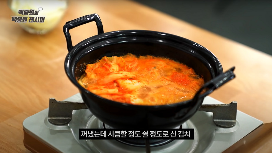 그리고 또 하나 중요한 포인트가 있습니다. 김치는 반드시 신맛이 날 정도로 충분히 익은 것을 사용하셔야 합니다. 만약 만든 지 얼마 되지 않은 김치로 끓이면 양배추 수프처럼 비슷한 맛이 날 수 있으니, 꼭 묵은지를 사용해 주시기 바랍니다.