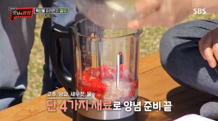 기본 양념 : 홍고추 6개, 양파 반 개, 새우젓 반 종이컵, 물 종이컵 반 컵