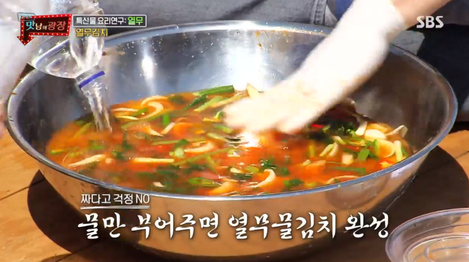 마지막으로 물을 부어주면 열무물김치가 되고, 물을 넣지 않으면 열무김치가 완성됩니다. 한 가지 레시피로 두 가지 김치를 만들 수 있는 셈입니다. 지금까지 열무김치 맛있게 담그는 법 황금레시피(백종원 레시피)를 소개해드렸습니다.