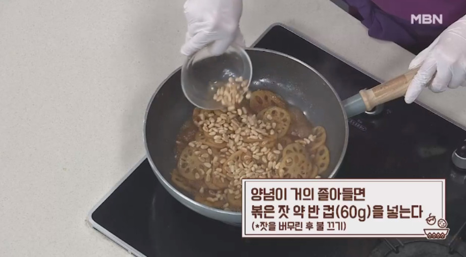 연근조림을 만들 때 연근을 먼저 볶는 이유는 겉면을 코팅해 부서짐을 막고 아삭한 식감을 유지하기 위함입니다.