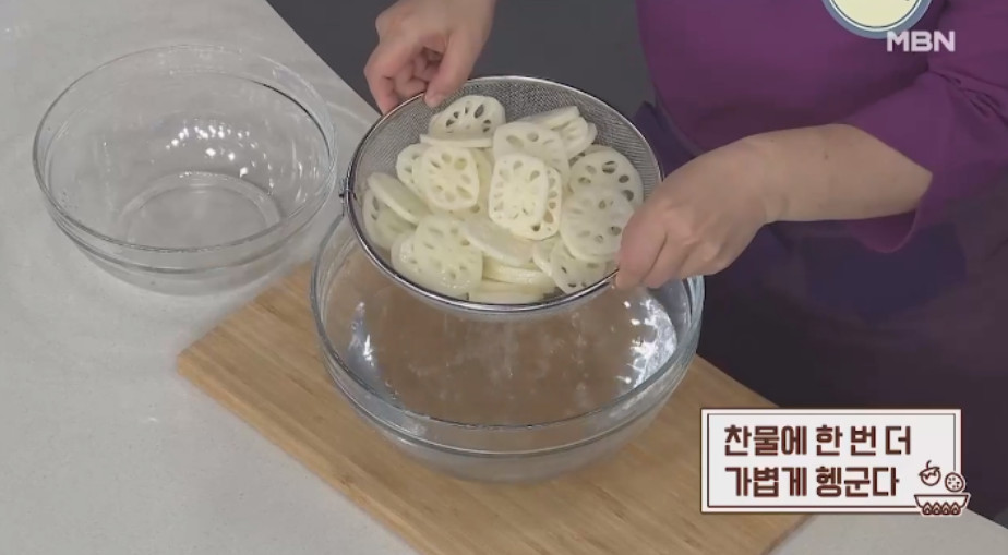 3. 연근을 찬물에 한 번 더 가볍게 씻어 줍니다.