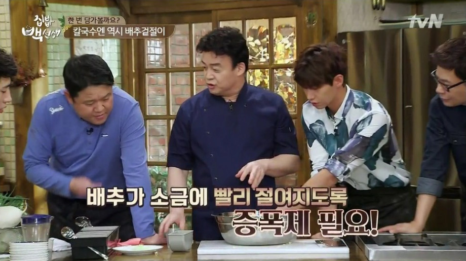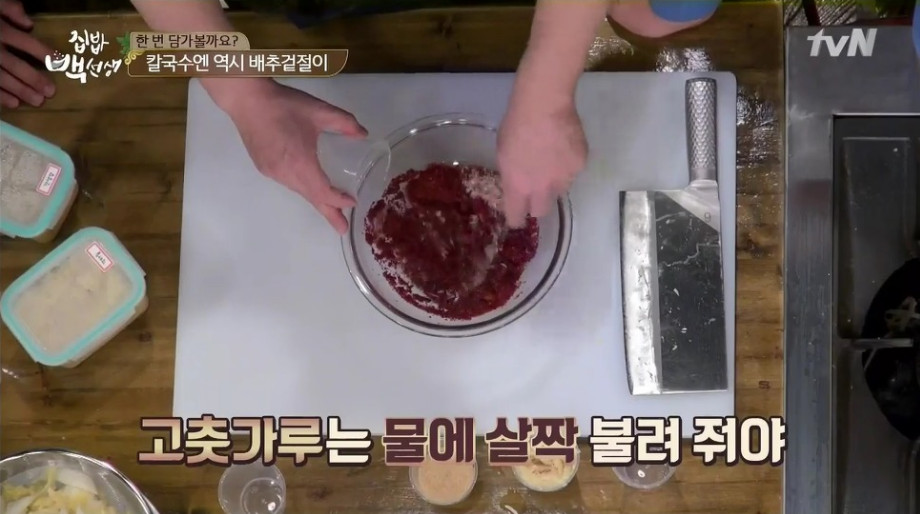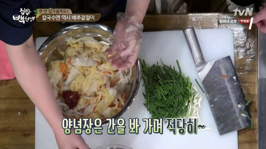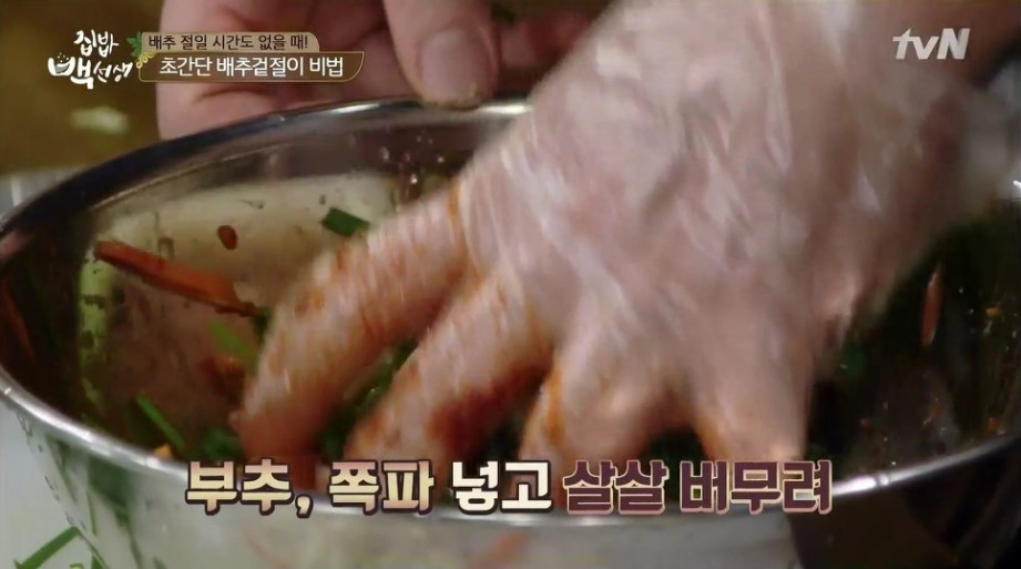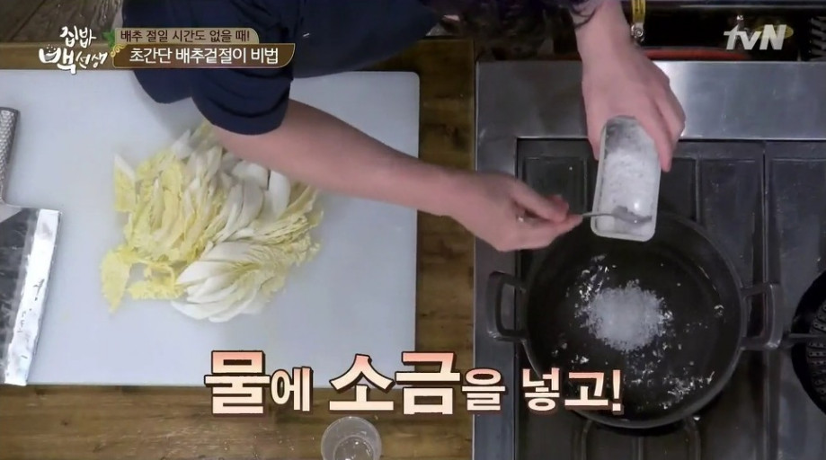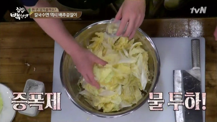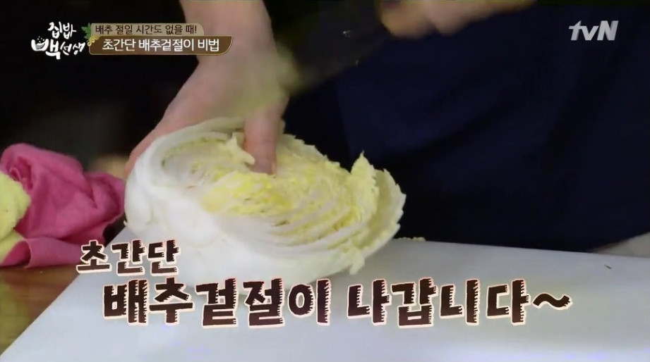 또한 간단한 방법으로 끓는 소금물에 배추를 살짝 데친 뒤 찬물에 헹궈 사용하는 방법도 있습니다. 이후 과정은 동일하게 진행하시면 더욱 빠르게 만들 수 있습니다.