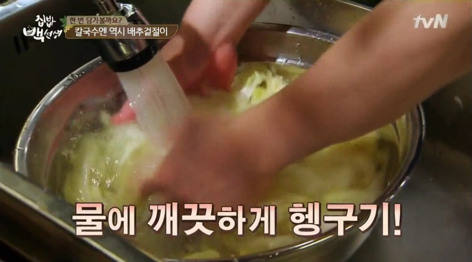 9. 절인 배추는 깨끗이 헹군 뒤 물기를 충분히 빼 주세요.