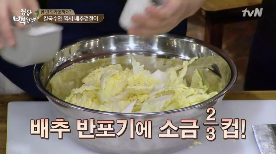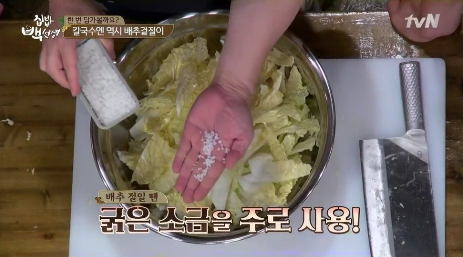 4. 이제 배추를 절일 차례입니다. 이번 레시피에서는 소금을 직접 뿌려 절이는 방법을 사용합니다.
