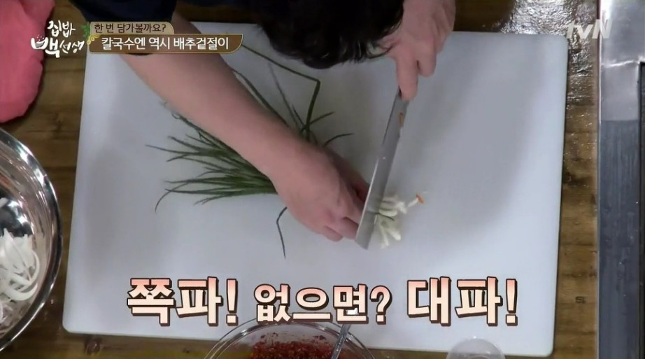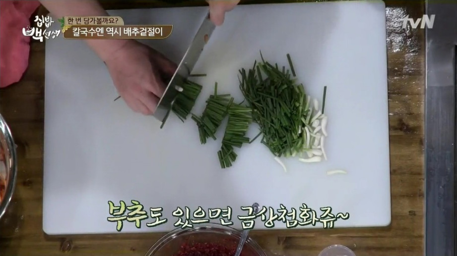 16. 마지막으로 쪽파와 부추, 깨를 넣어 마무리하면 완성입니다.