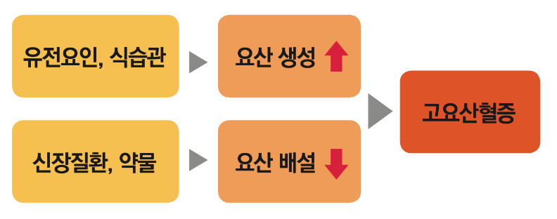 요산이 혈액에 축적돼 발생하는 통풍은 부자병이라는 별명이 붙은 대사질환으로 꾸준한 관리가 필요합니다. 요산은 퓨린이라는 단백질이 체내에서 소화돼 대사된 뒤 나오는 물질로, 몸속에 과도하게 축적되면 결정체로 변하여 관절 안에 축적돼 염증을 일으킵니다. 과도한 통증과 고열을 동반하는 통풍은 증상이 심할 경우 관절염과 만성 신부전의 위험이 높아집니다. 보통 40~50대 남성에게 발생하는 통풍은 성별, 연령, 유전적 요인 외에 비만이나 불규칙한 식습관 등 후천적 요인이 원인이라고 합니다.